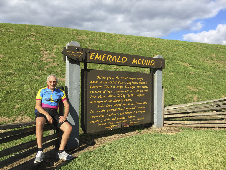 Day 4 Natchez Trace Parkway, Mount Locust & Emerald Mound Once again we set out on the Natchez Trace Parkway, riding all the way into Natchez, the terminus of the parkway. Passingmany sites to visity, we will stop at Coles Creek to enjoy one last picnic lunch prepared by our leaders, and enjoyed under the shade tress next to the creek. Continue on to visit Mount Locust and Emerald Mound before arriving in Natchez and our lodgings for the next two nights. Hotel: Monmouth Historic Inn Daily Options: 23 or 41 miles Click on image to see larger size |